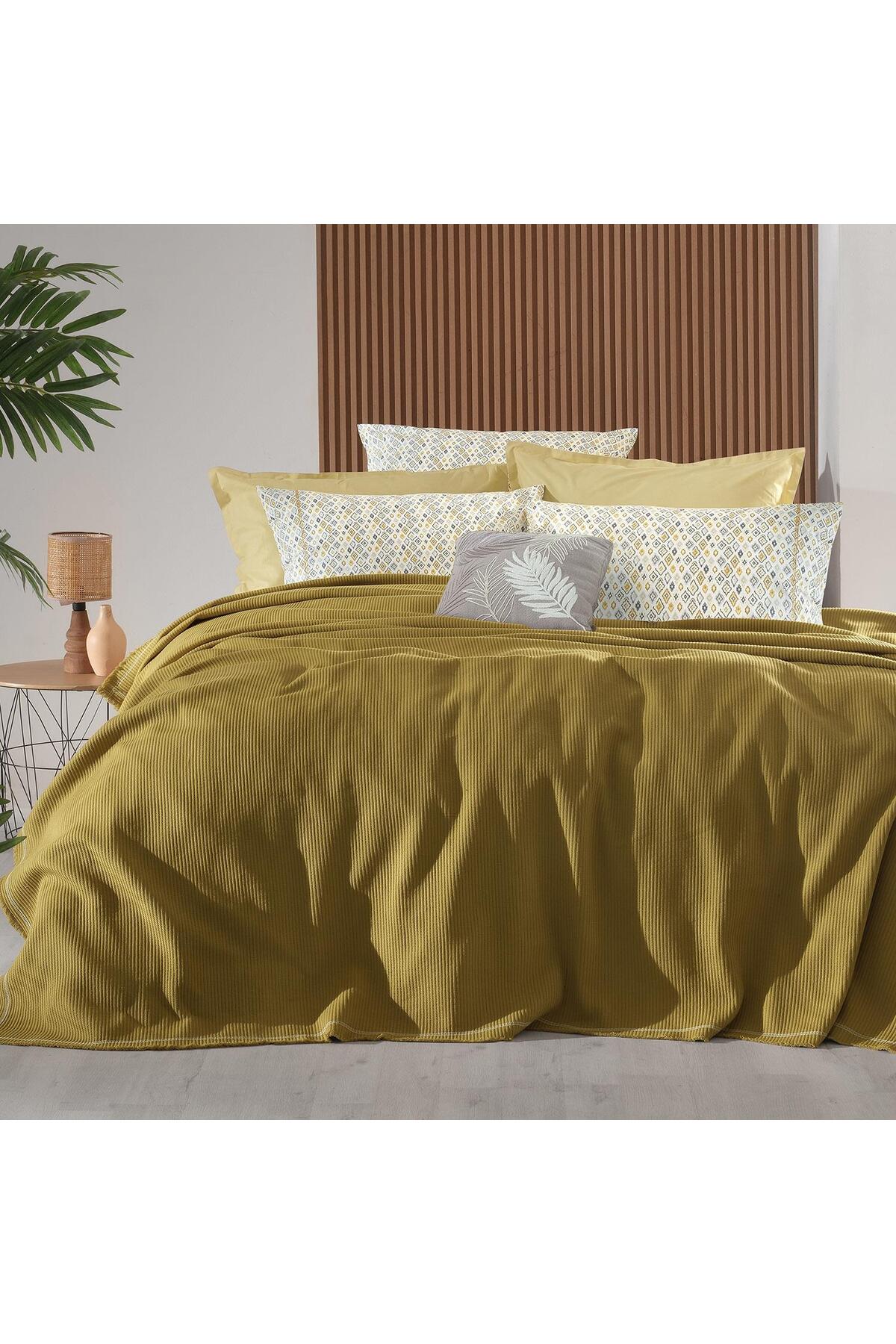 Abel Sarı Çift Kişilik %100 Pamuk Pike Takımı