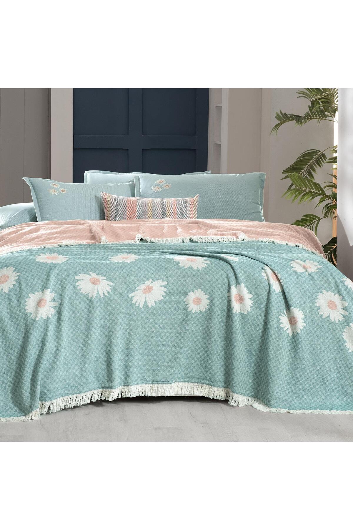 Berni Yeşil Çift Kişilik %100 Pamuk İpliği Boyalı Pike Takımı