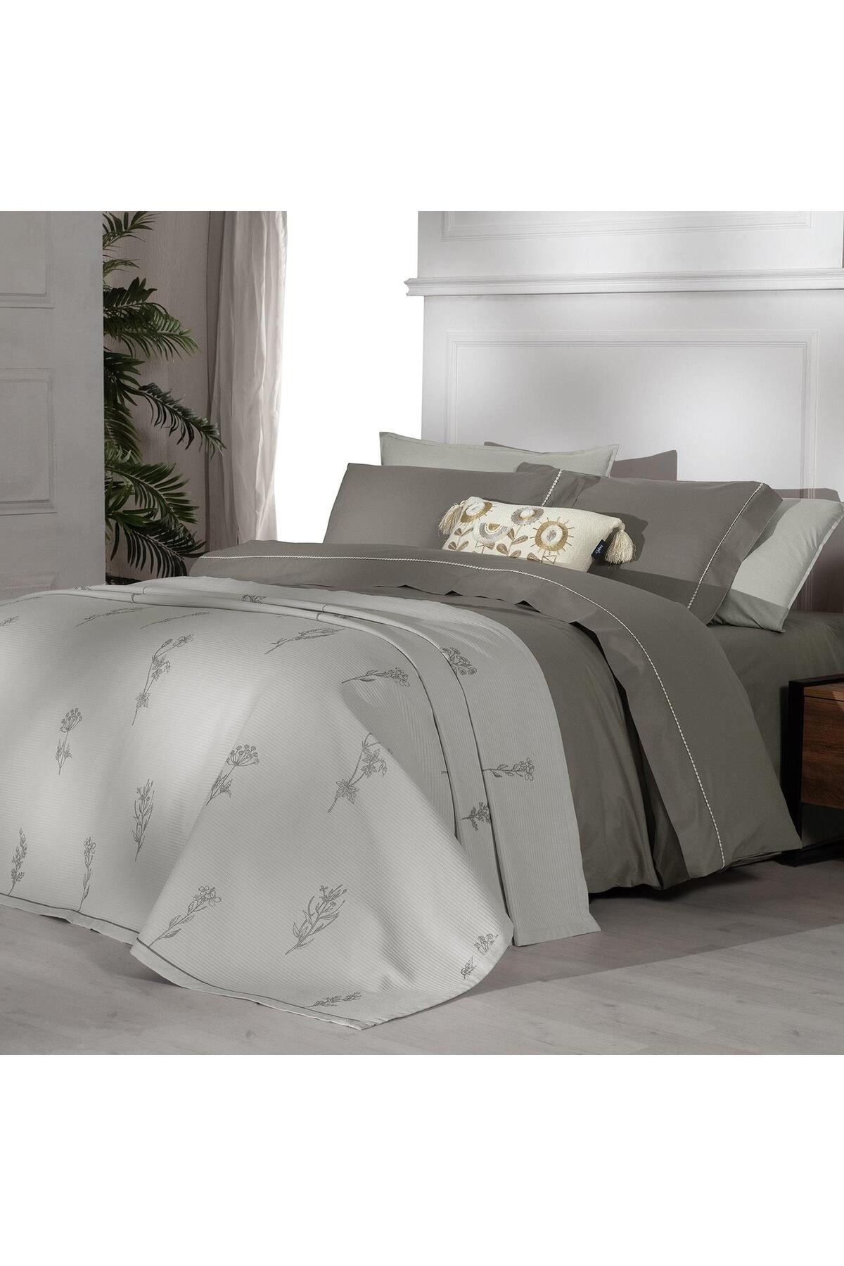 Eva Eldon Bej Tek Kişilik %100 Pamuk Nevresim Takımı ve Pike Seti