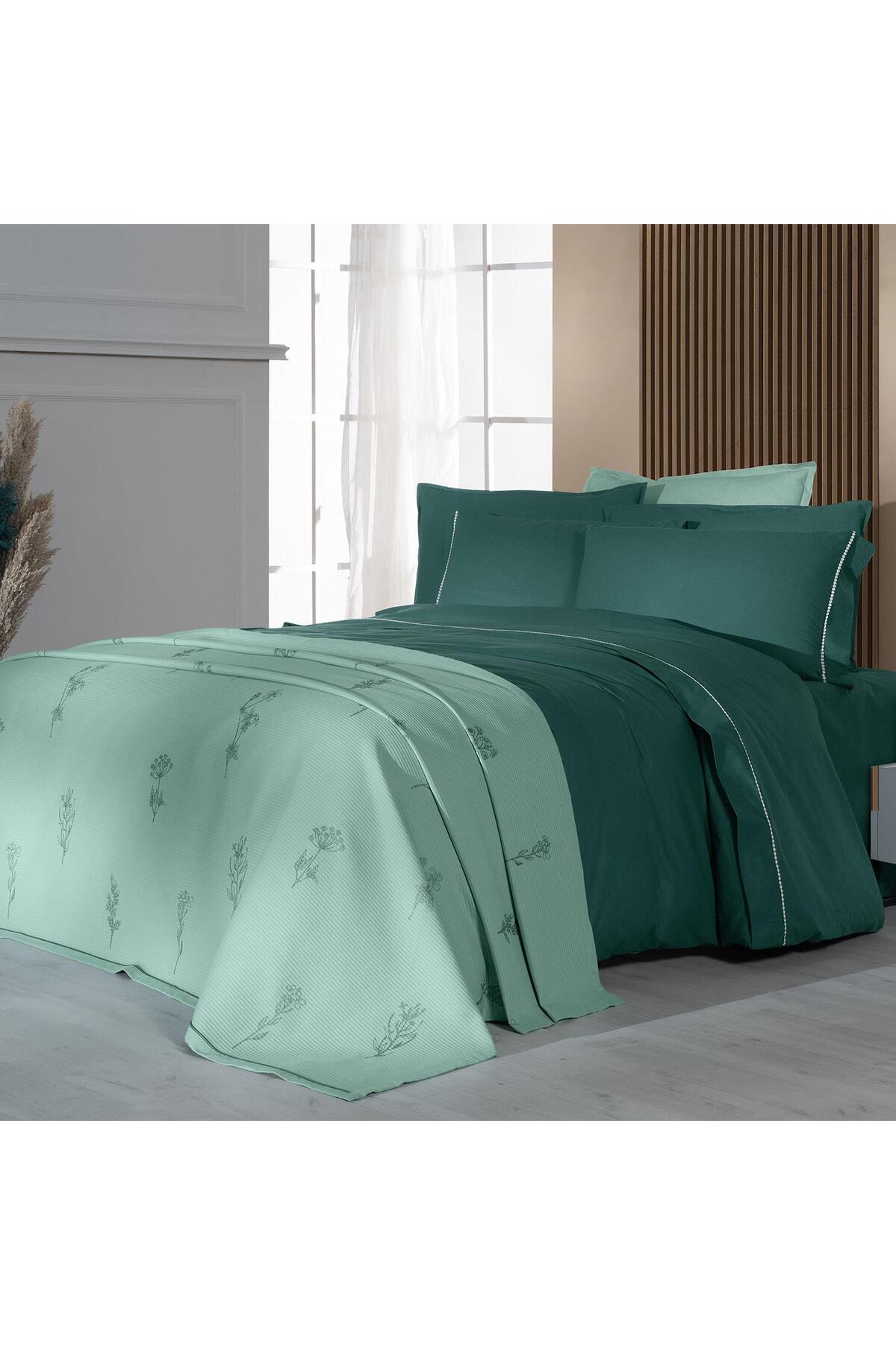 Eva Eldon Yeşil Tek Kişilik %100 Pamuk Nevresim Takımı ve Pike Seti