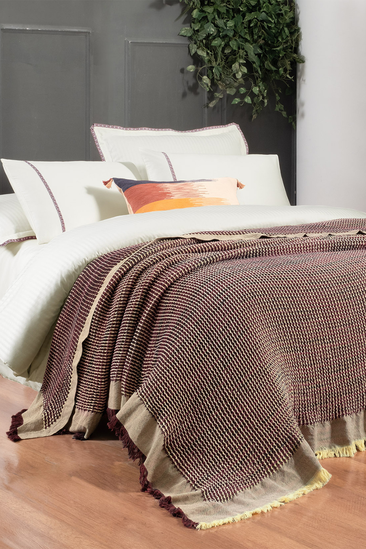 Yatak örtüsü için kuru temizleme, nevresim takımı için ise 40 derecede çamaşır makinesinde yıkama imkanı sunar; böylece ürünlerinizin uzun ömürlü olmasını ve renklerinin canlılığını korumasını sağlar; - Çizgili deseniyle modern ve şık bir görünüm kazandırırken, çift taraflı kullanım özelliği ile dekorasyonunuzda esneklik sunar; - Kutulu paketiyle gelen nevresim takımı, hem estetik hem de pratik bir kullanım vaat eder;