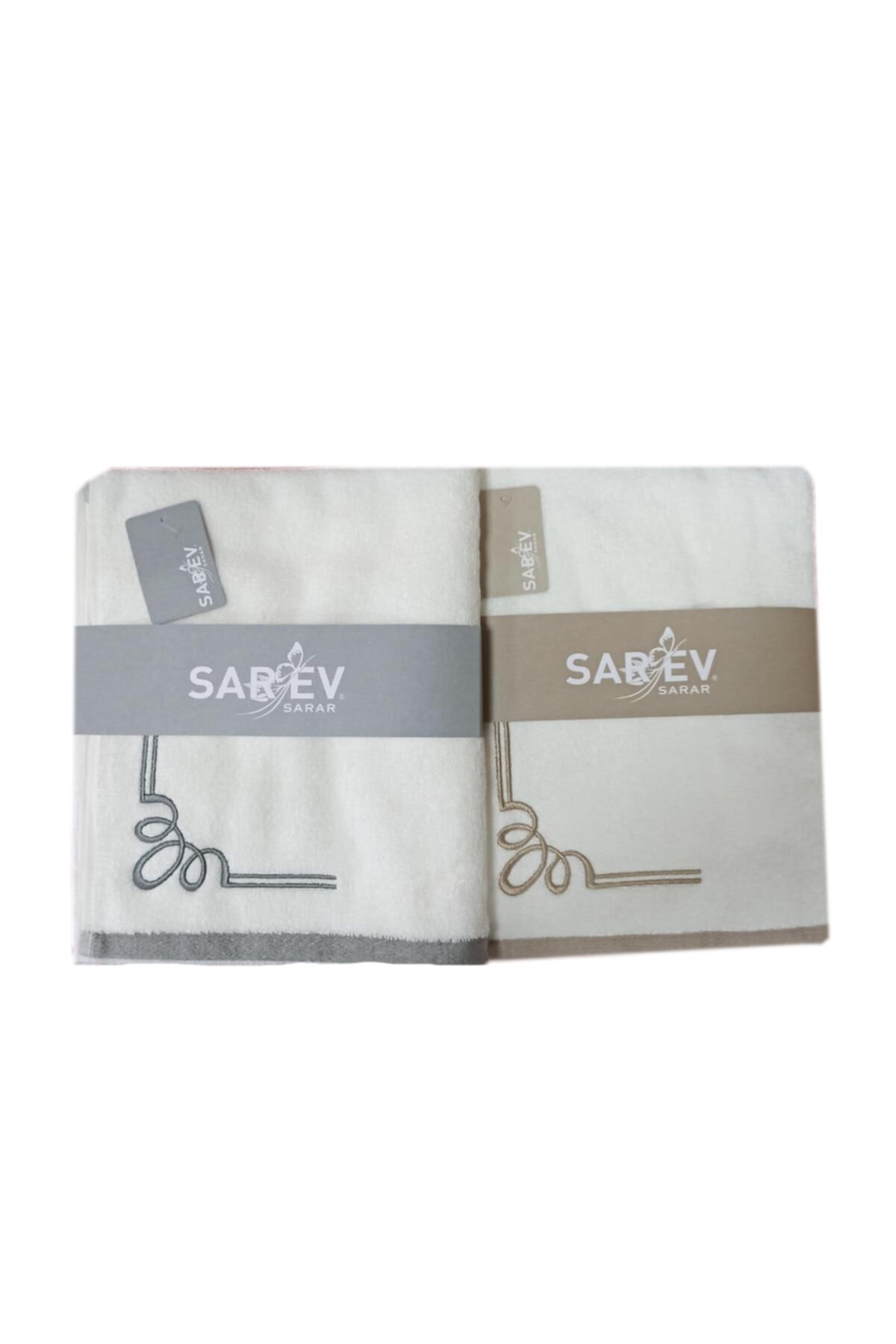 SAREV KİROS NAKIŞLI HAVLU 2 ADET GRİ-KAHVE %100 PAMUK 2 ADET 50X90 EBATLARINDA HAVLU (1 ADET GRİ,1 ADET KAHVE NAKIŞLI) HAVLULARIN KÖŞELERİNDE NAKIŞ BULUNMAKTADIR. HAVLULAR ADET BAŞINA 550/M2